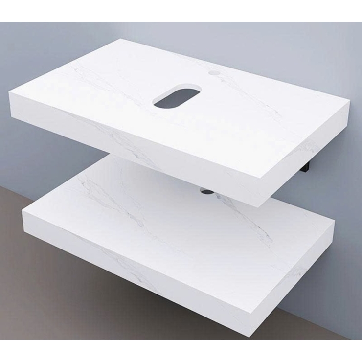 Bàn Đá Lavabo 2 Tầng Vân Trắng + Vòi + Gương Led (BD04)