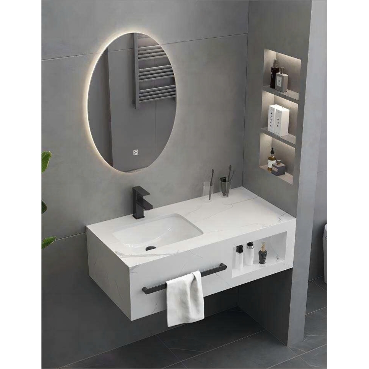 Bàn Đá Kỷ Nguyên Vân Trắng 80X50 + Vòi + Gương LUSENTER (BD11)