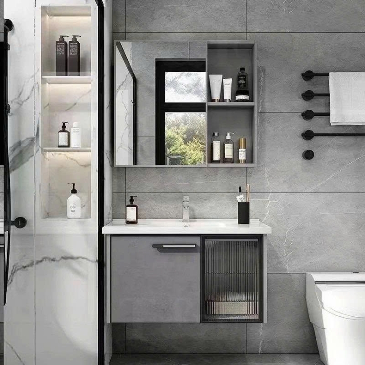 Tủ Lavabo Kiểu Full Xám + Gương Led Cảm Ứng LUSENTER (TLVB26)