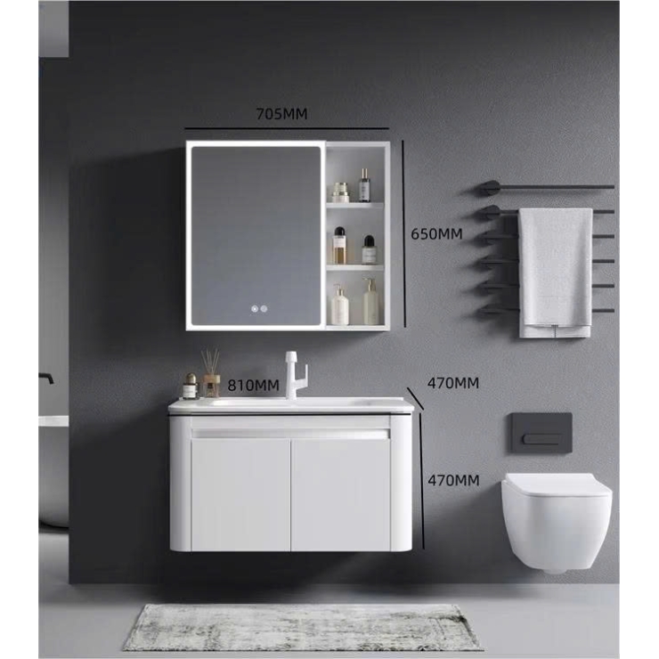 Tủ Lavabo Kiểu Full Xám + Gương Led Cảm Ứng LUSENTER (TLVB26)