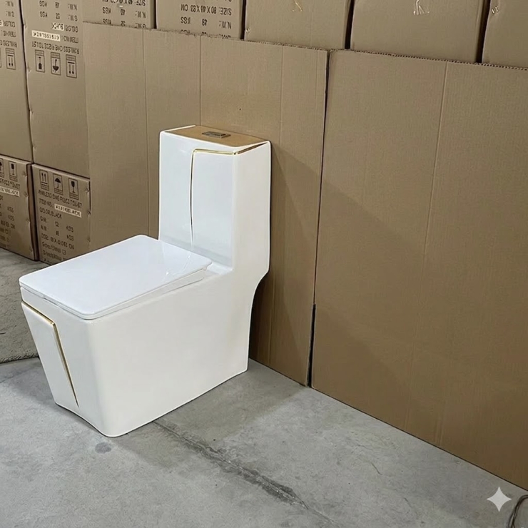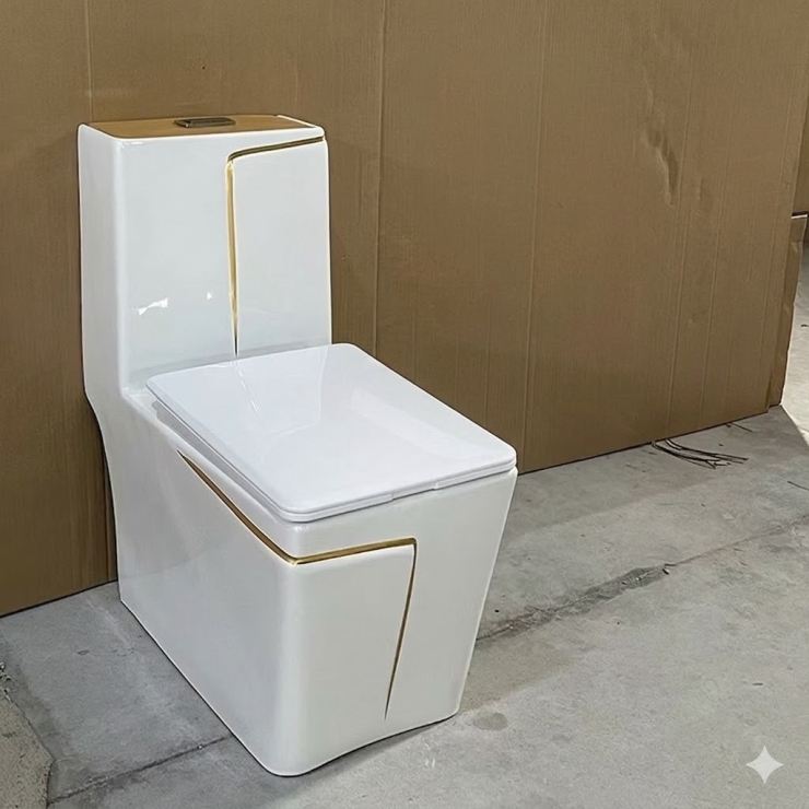 Bồn Cầu Một Khối Đen Kim Sa Viền Vàng Cao Cấp BCMK70