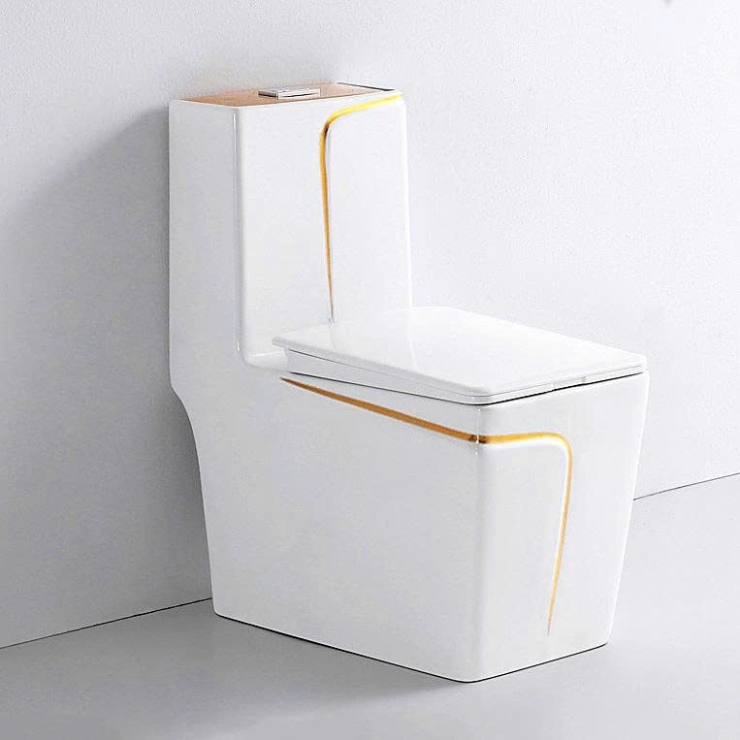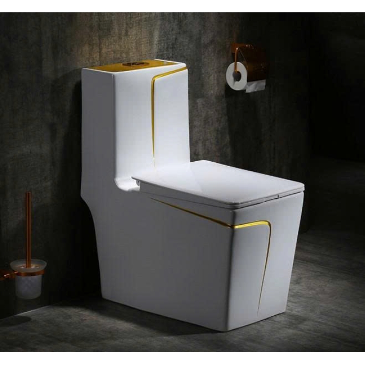 Bồn Cầu 1 Khối Trắng Viền Vàng Vuông BCMK66