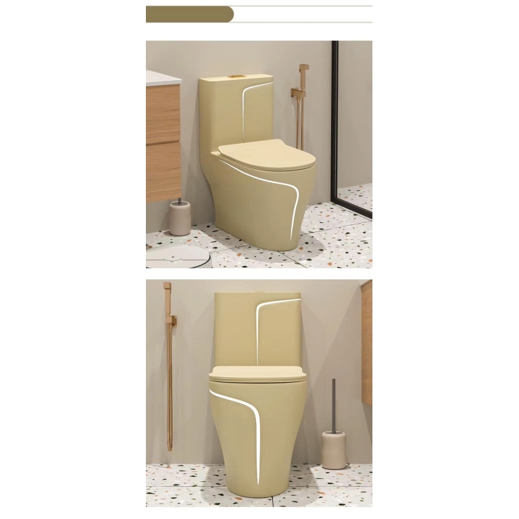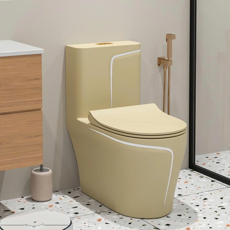 Bồn Cầu Một Khối Trắng Sọc Vàng Vân Xám LUSENTER (BCMK45)