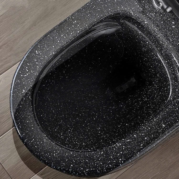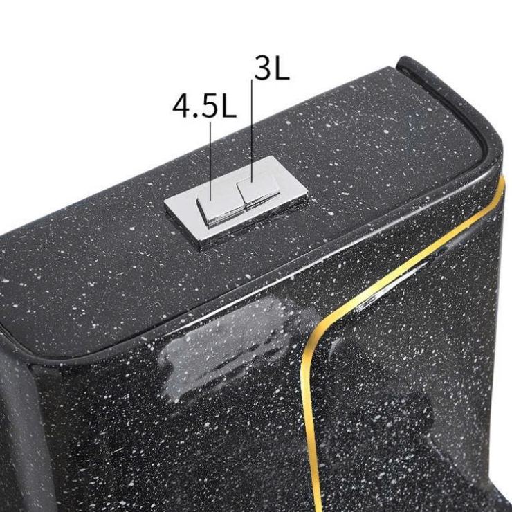 Bồn Cầu Một Khối Thân Lùn Đen Viền Vàng BCMK64