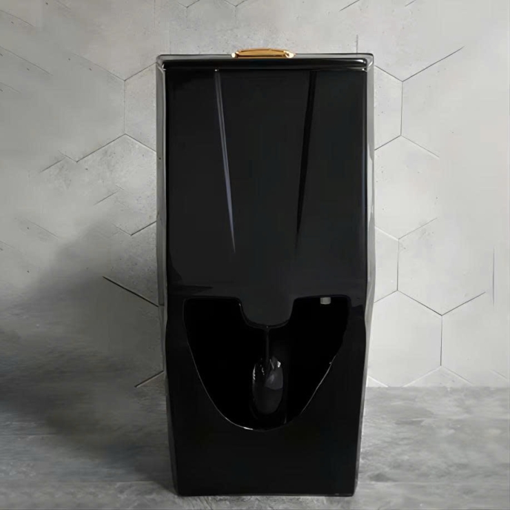 Bồn Cầu 1 Khối Đen Vân đá + Sọc Vàng LUSENTER (BCMK38)