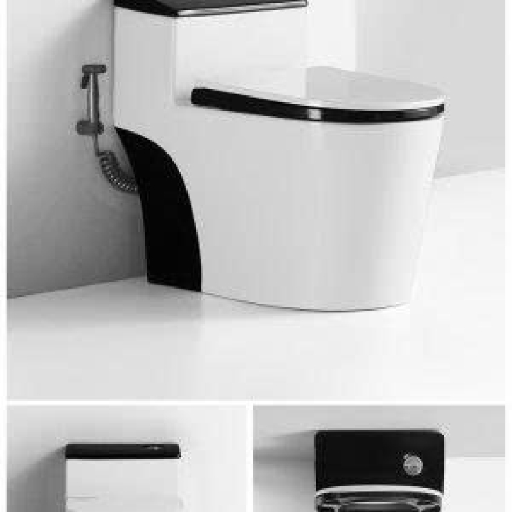 Bồn Cầu Một Khối Nắp Đen LUSENTER (BCMK07)