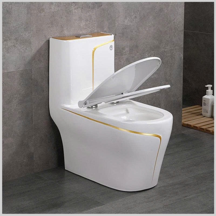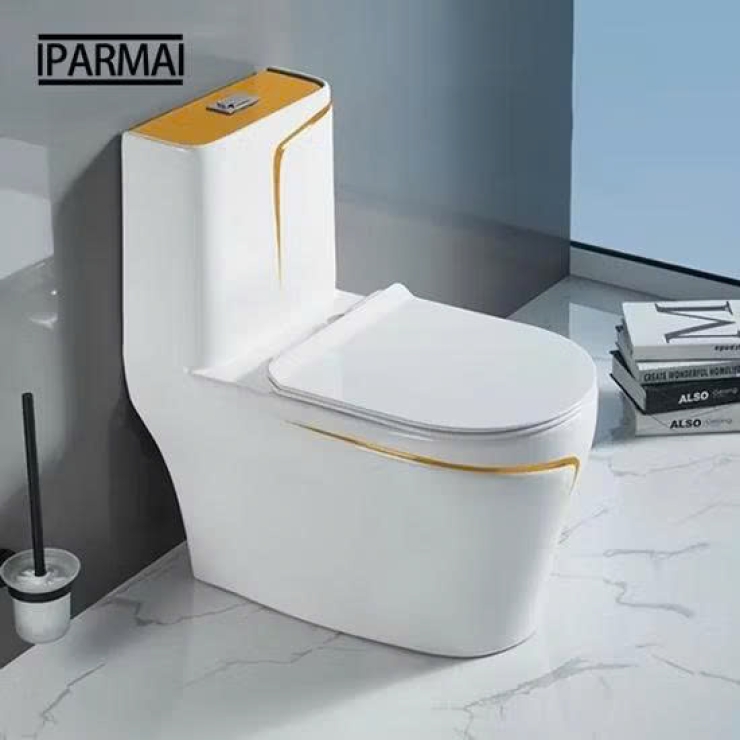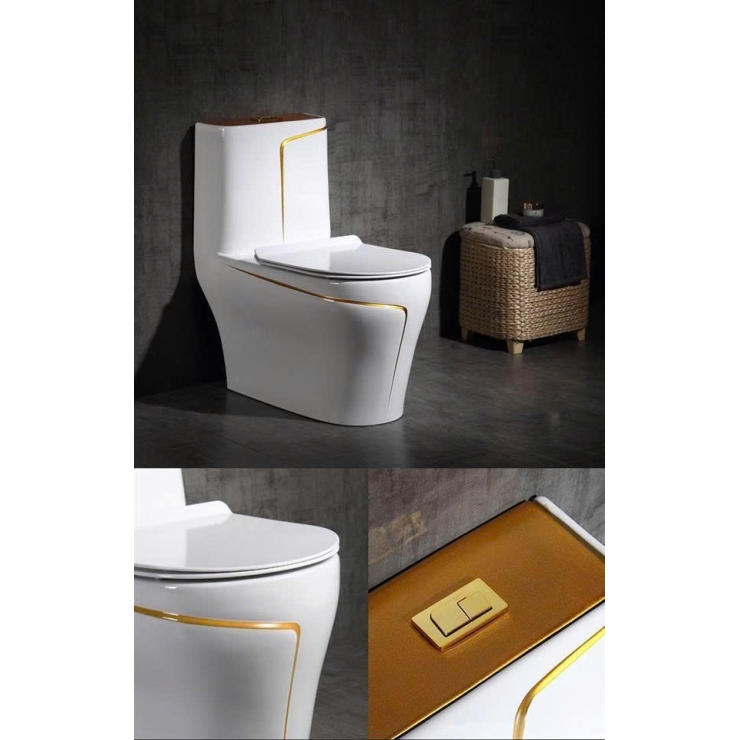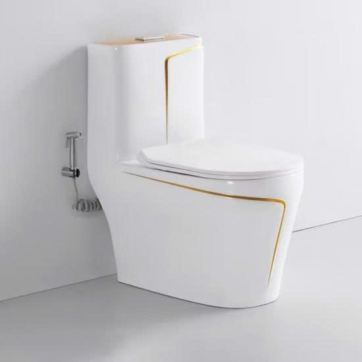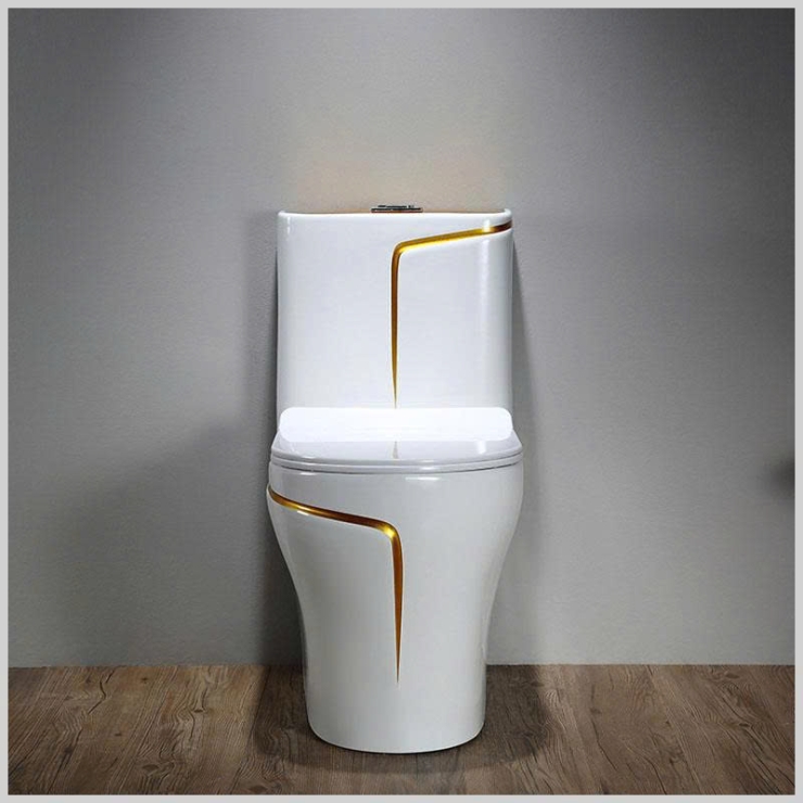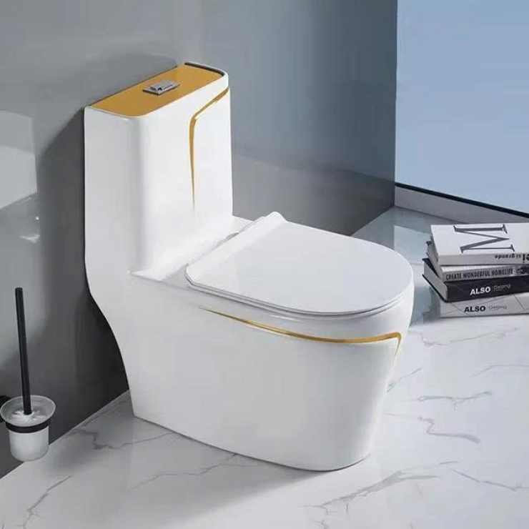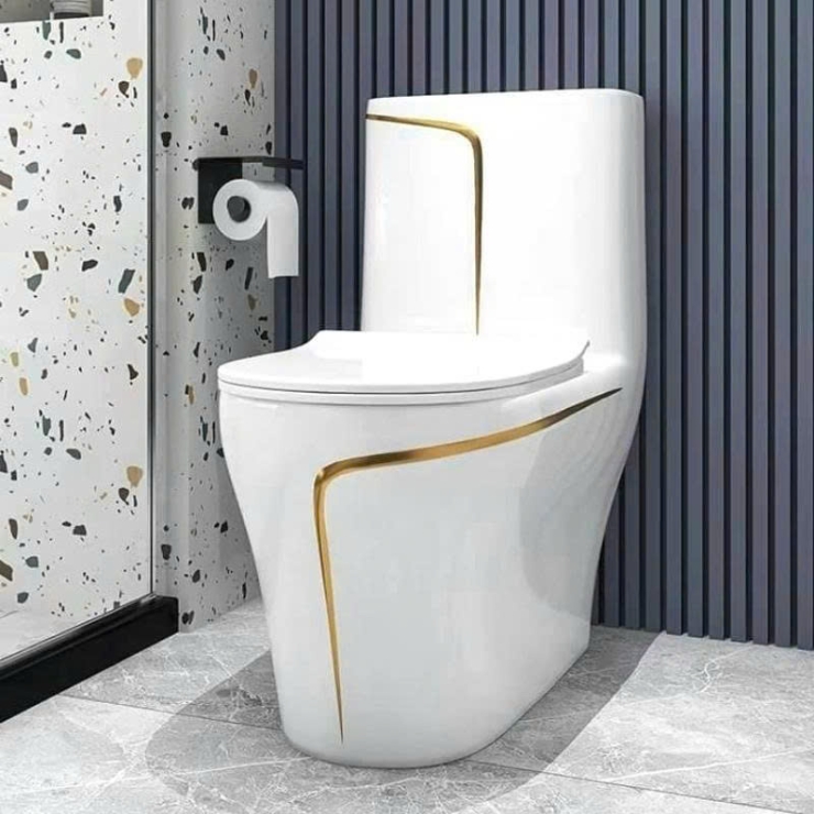 Bồn Cầu Một Khối Trắng Sọc Vàng Vân Xám LUSENTER (BCMK45)