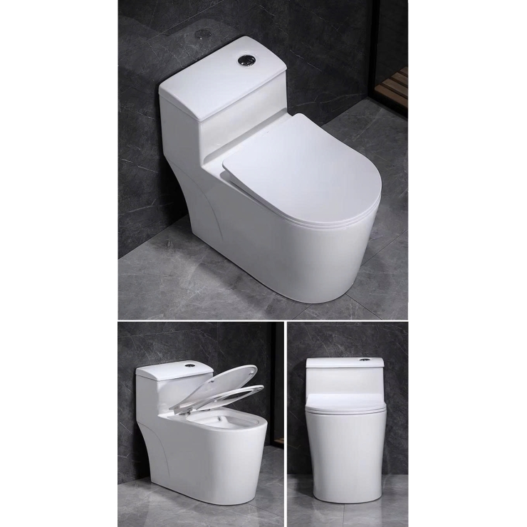 Bồn Cầu Một Khối Trắng Sọc Đen LUSENTER (BCMK22)