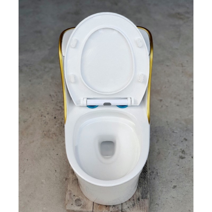 Bồn Cầu 1 Khối Trắng Viền Vàng LUSENTER (BCMK34)