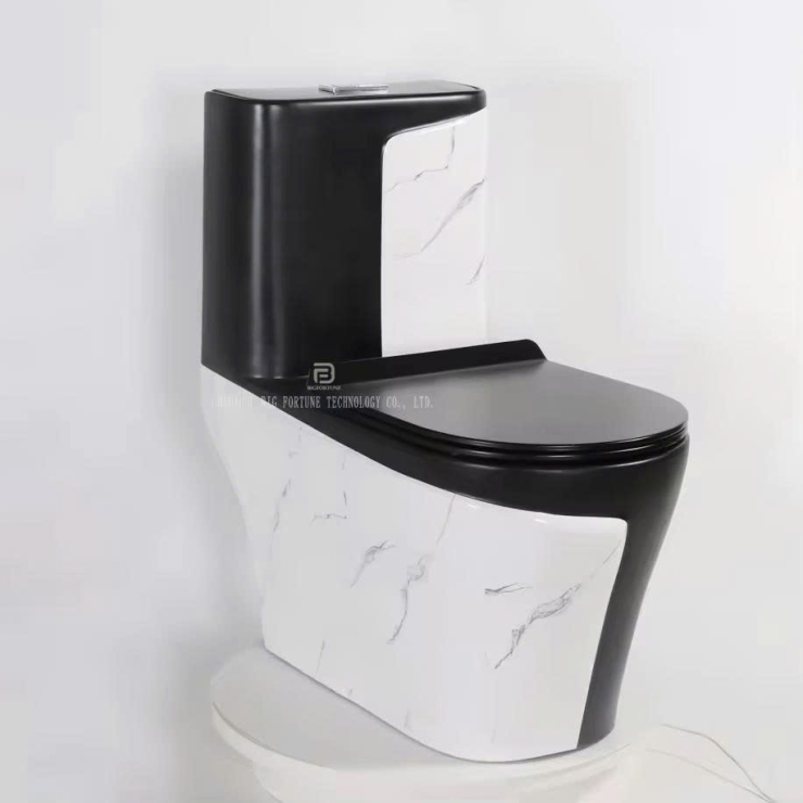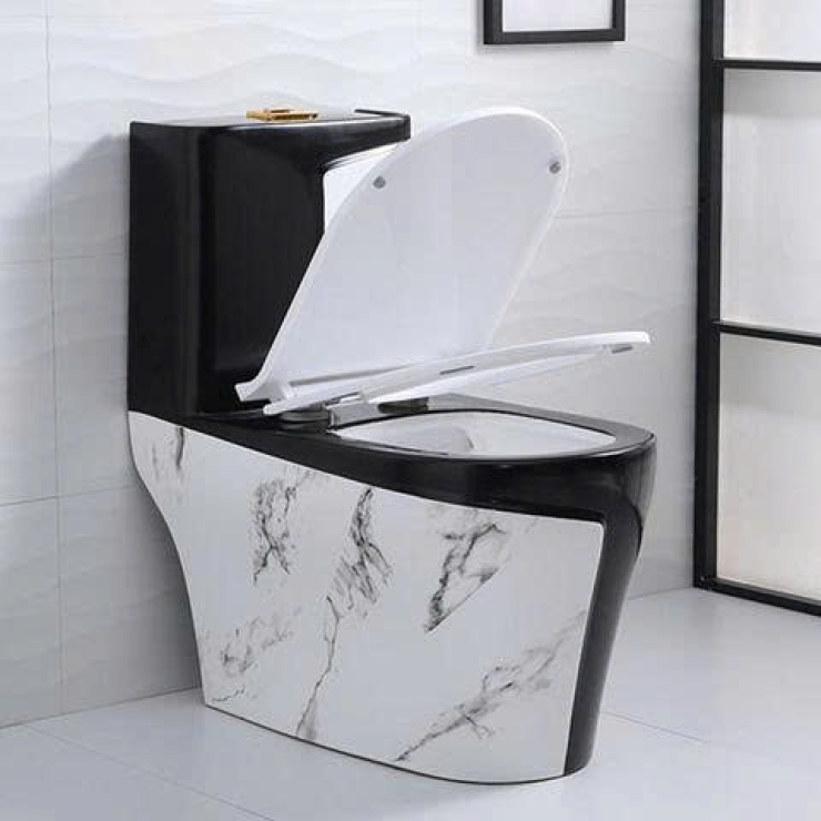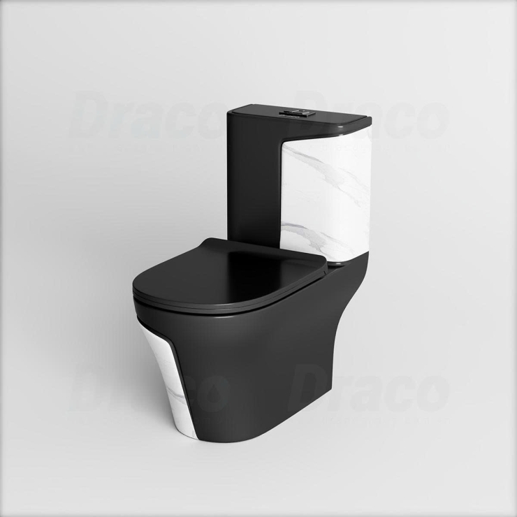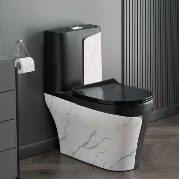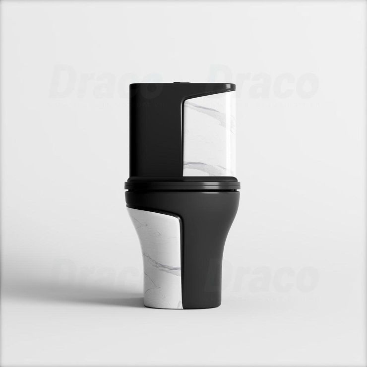 Bồn Cầu Một Khối Vân Đá Trắng Đen LUSENTER (BCMK09)
