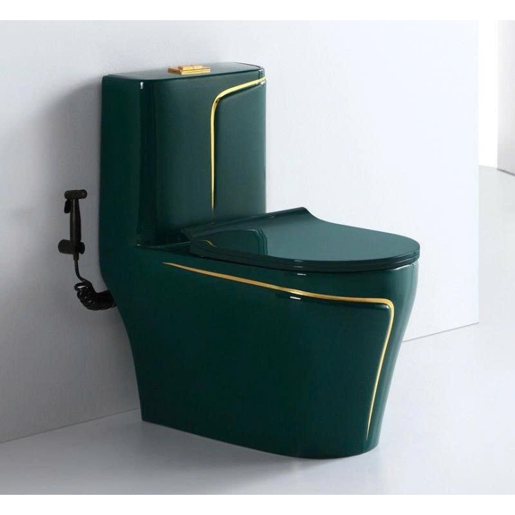 Bồn Cầu 1 Khối Xanh Rêu Sọc Vàng LUSENTER( BCMK27)
