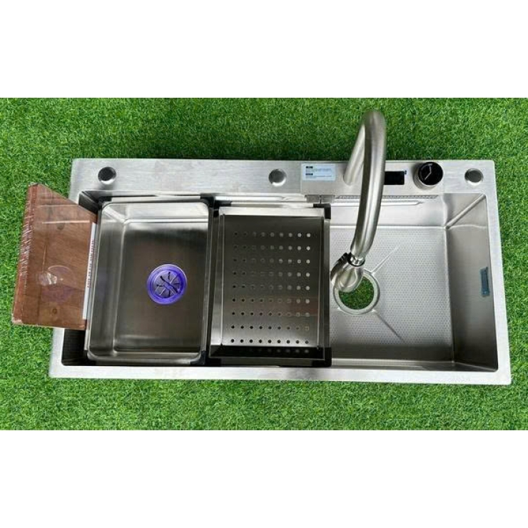 Bồn Rửa Chén Inox 2 Hộc Dao, Ly, Rác KT 100x48x23cm (BRC44)
