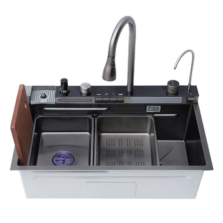 Chậu Rửa Chén 2 Hộc - Xám Đen Nhám - 82x45x23 LUSENTER (BRC04)