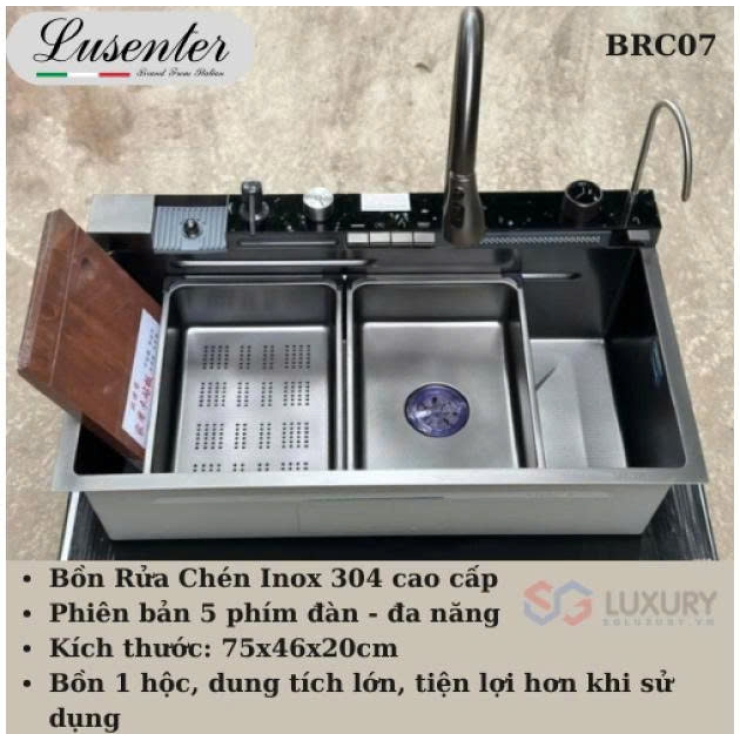 Chậu Rửa Chén 1 Hộc Nano 75x46/60x45 LUSENTER (BRC37)