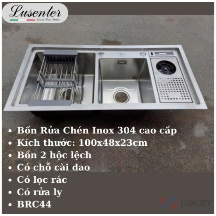 Chậu rửa chén 2 hộc inox 304 - 82x45cm LUSENTER (BRC36)