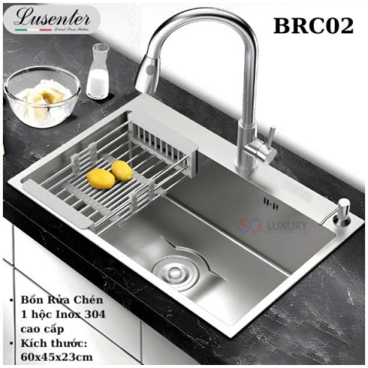 Bồn Rửa Chén Inox Một Hộc KT 60x45 LUSENTER (BRC02)