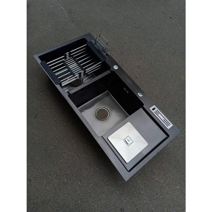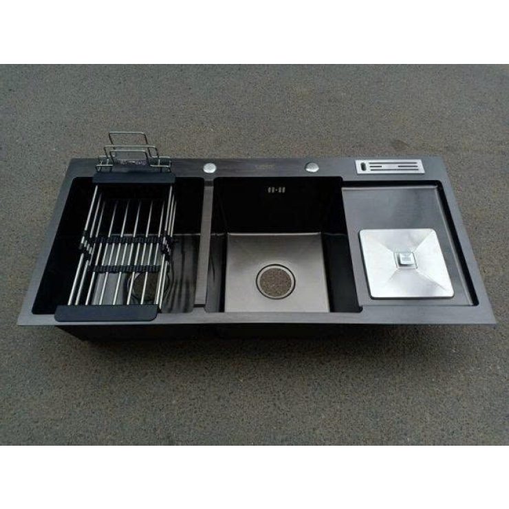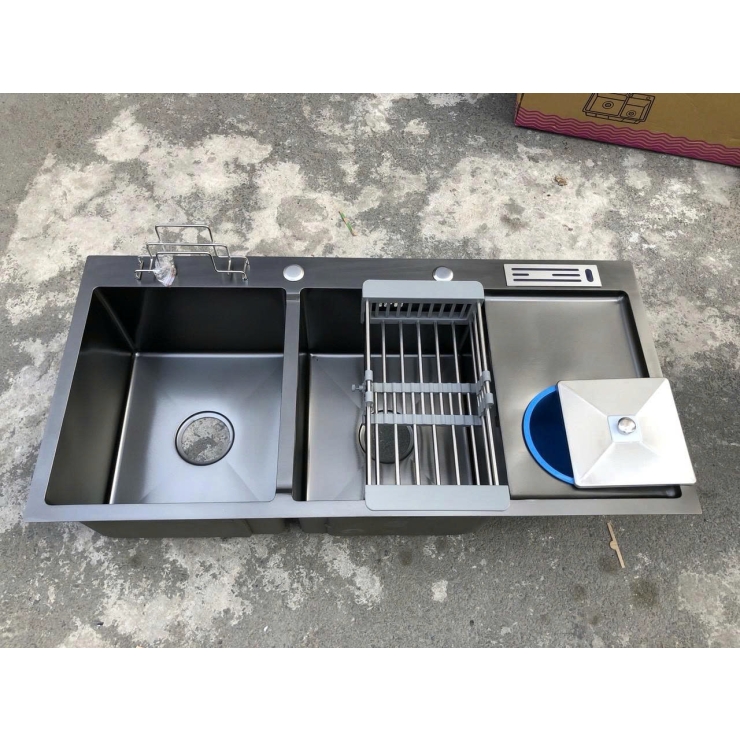 Chậu Rửa Chén 2 Hộc - Xám Đen Nhám - 82x45x23 LUSENTER (BRC04)