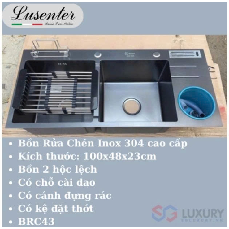 Chậu rửa chén 2 hộc inox 304 - 82x45cm LUSENTER (BRC36)