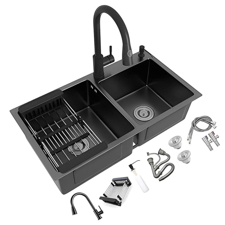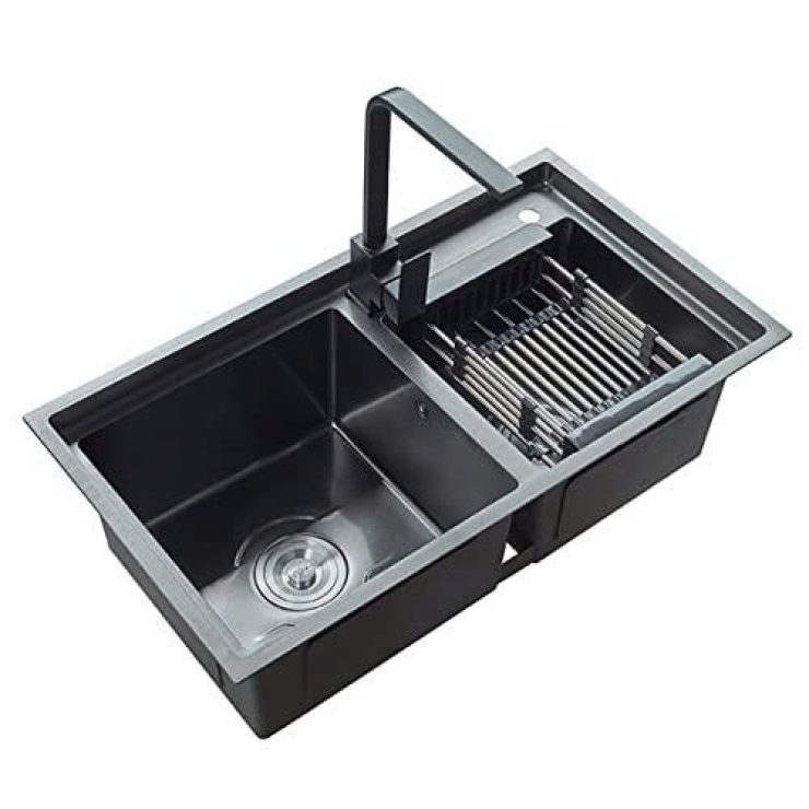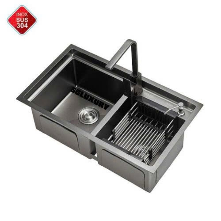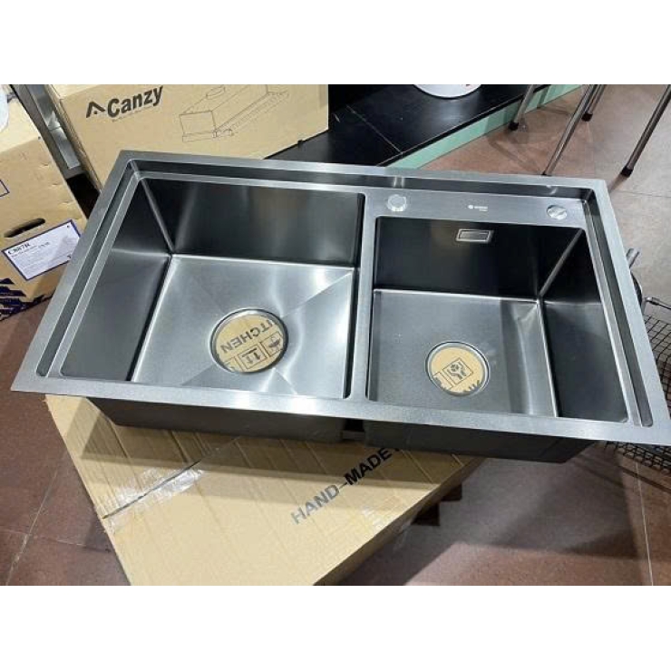 Chậu Rửa Chén 2 Hộc Lệch Đen 80x45 LUSENTER(BRC05)