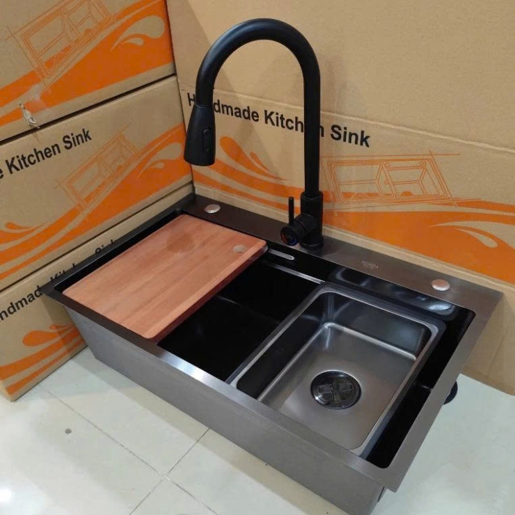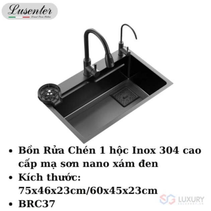 Bồn Rửa Chén Inox 304 Mạ Nano Xám 78x45 LUSENTER (BRC42)