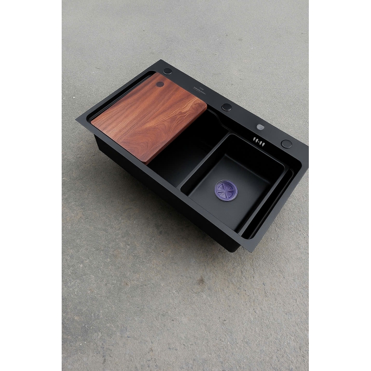 Chậu Rửa Chén 2 Hộc - Xám Đen Nhám - 82x45x23 LUSENTER (BRC04)