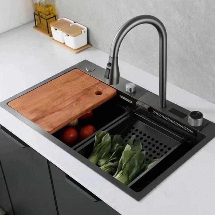 Bồn Rửa Chén Inox 304 Mạ Nano Xám 78x45 LUSENTER (BRC42)