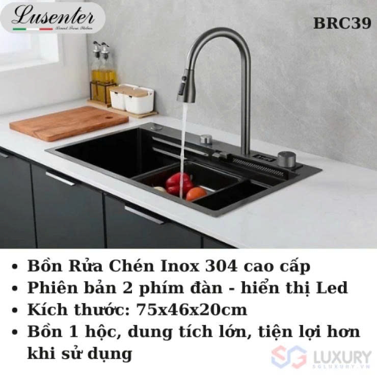 Chậu Rửa Chén 1 Hộc Nano 75x46/60x45 LUSENTER (BRC37)