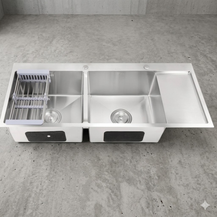 - Chậu rửa chén có bộ xả cao cấp, chống ngăn mùi và chống tràn cực kỳ hiệu quả.