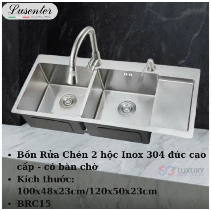 Chậu Rửa chén Inox Đúc Có Bàn Chờ LUSENTER (BRC15)