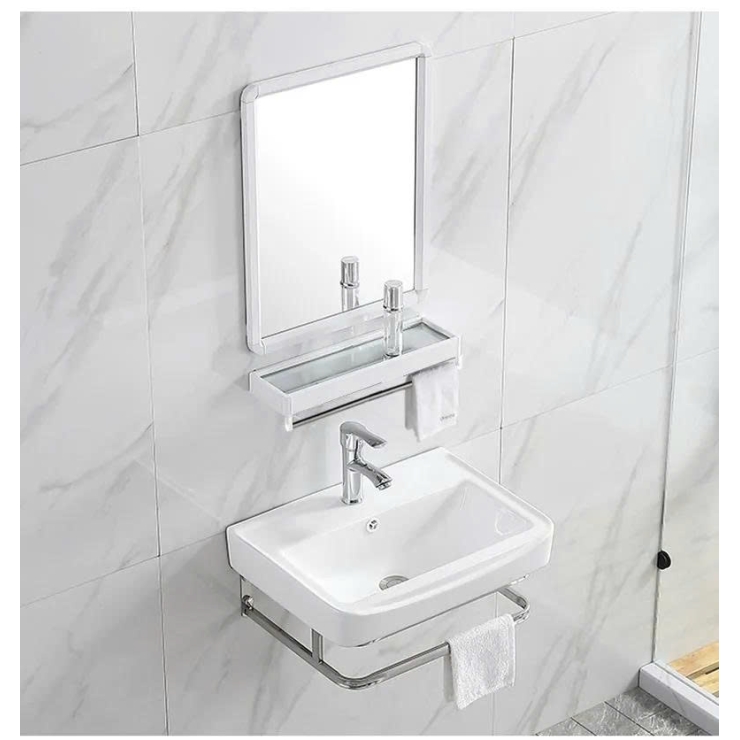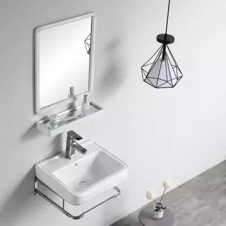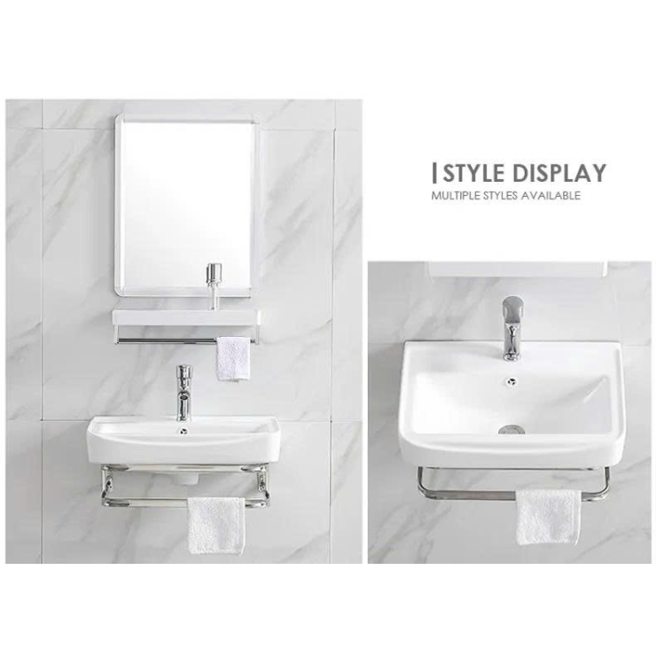 combo 5 món. lavabo + kệ inox +vòi lavabo +gương + kệ bộ xã