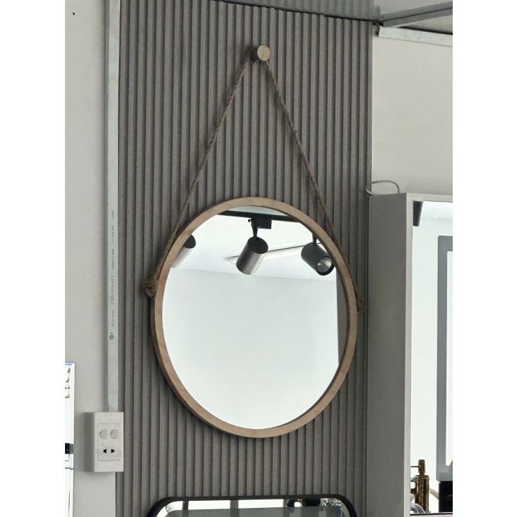 - Thiết kế: Gương có hình tròn, khung viền thường được làm từ gỗ MDF hoặc gỗ thông tự nhiên.