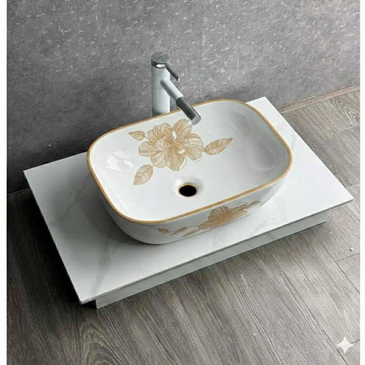 Lavabo Bầu Viền Vàng Họa Tiết Hoa (LB72)