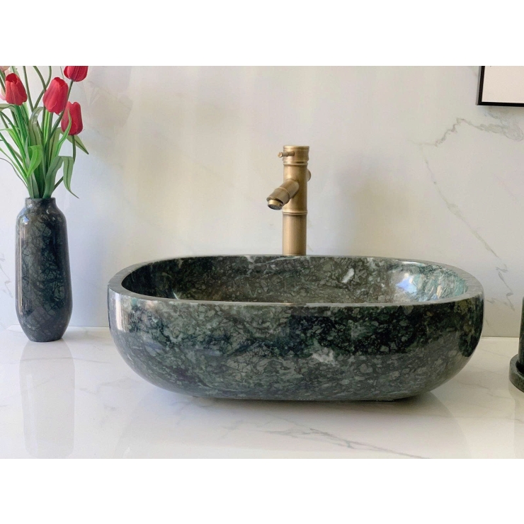 Lavabo Đá Bầu Dục Xanh Ấn Độ BST65 (LBD19)