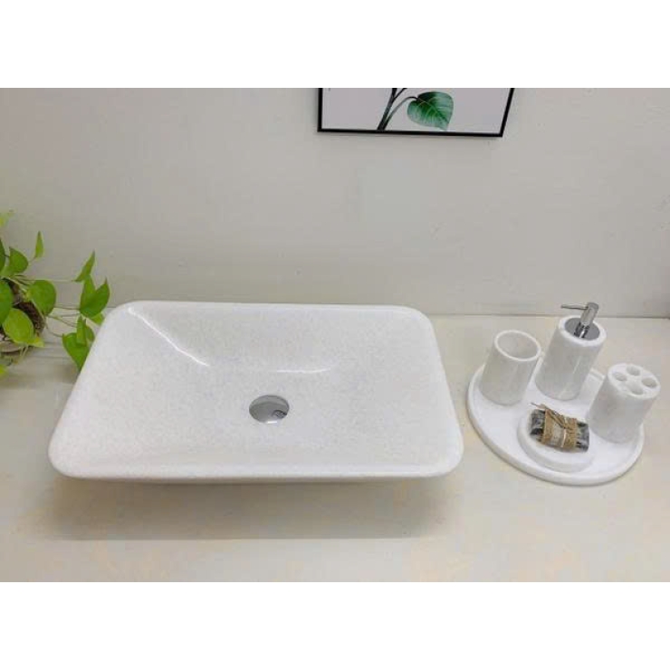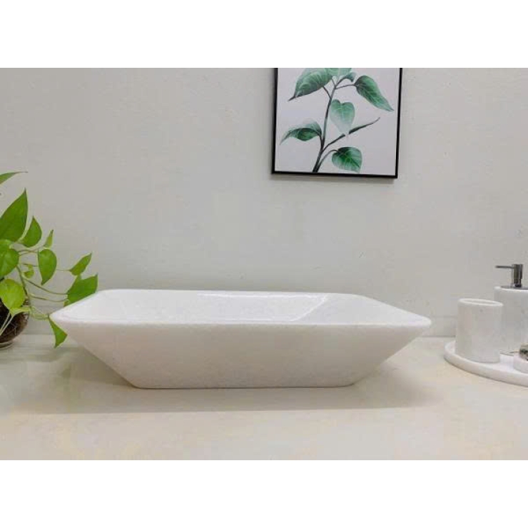 Lavabo Đá Chữ Nhật Trắng Vát Cạnh BST57A (LBD04)