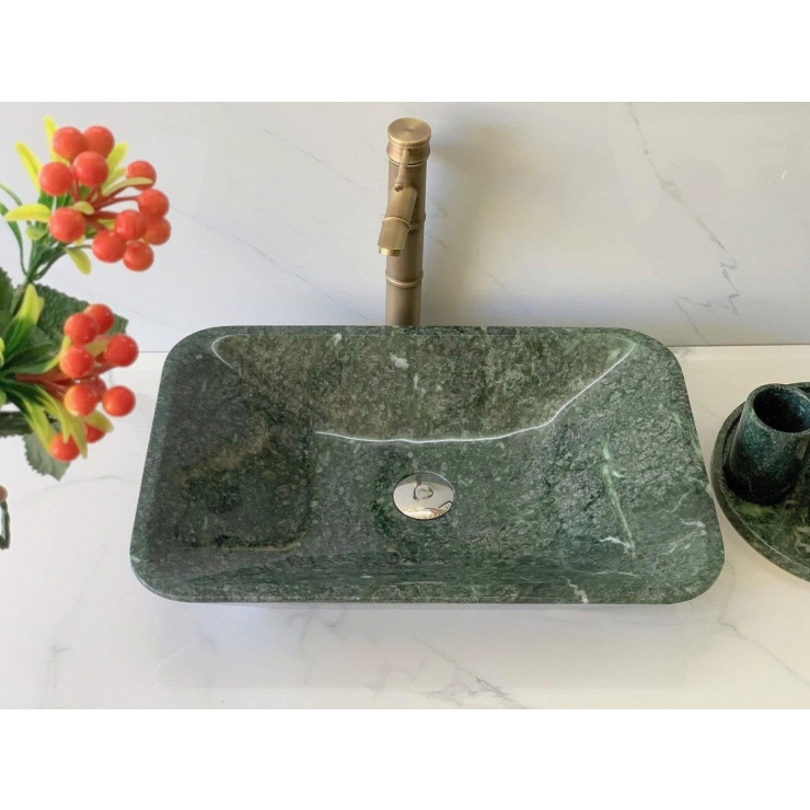 Lavabo Đá Chữ Nhật Vát Cạnh Xanh Ấn Độ BST60 (LBD22)