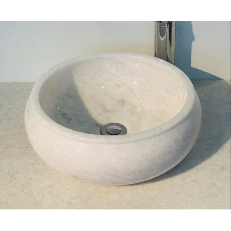 Lavabo Đá Trắng Tròn Mỏng Phình Thân BST13 (LBD02)
