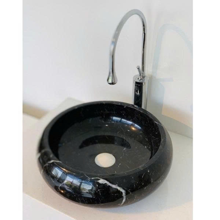 Lavabo Đá Tròn Mỏng Phình Thân Đen Ý BST23 (LBD08)