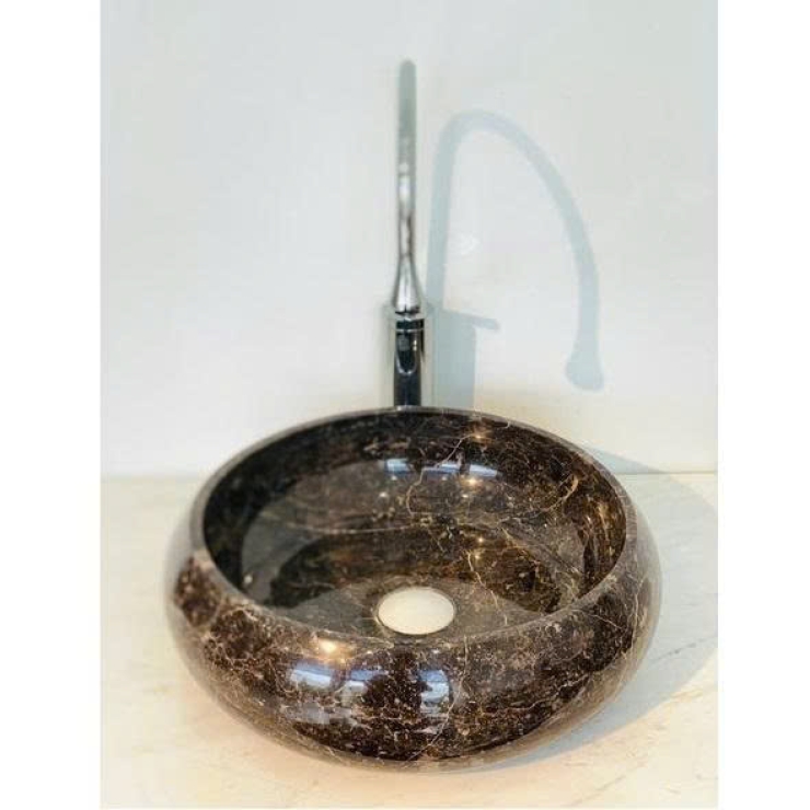 Lavabo Đá Tròn Mỏng Phình Thân Nâu Ý BST18 (LBD06)