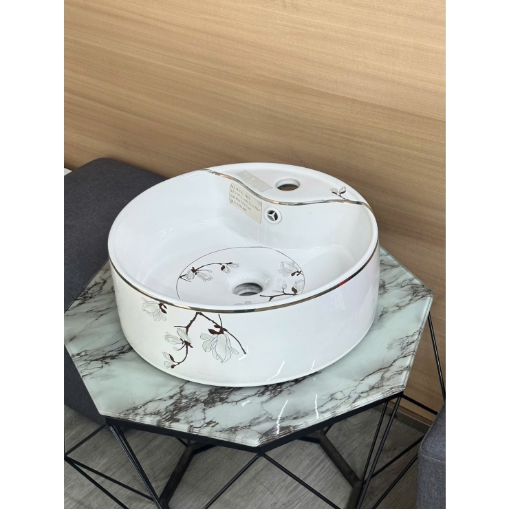 Lavabo Tròn Họa Tiết Hoa Viền Vàng LUSENTER (LB21)