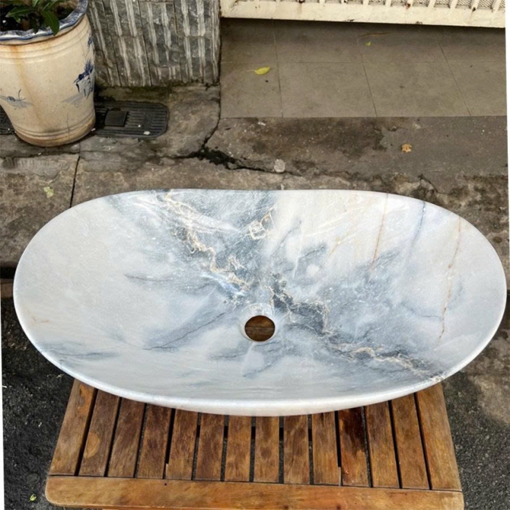 Lavabo Thuyền Vân Đá Trắng LUSENTER (LB52)
