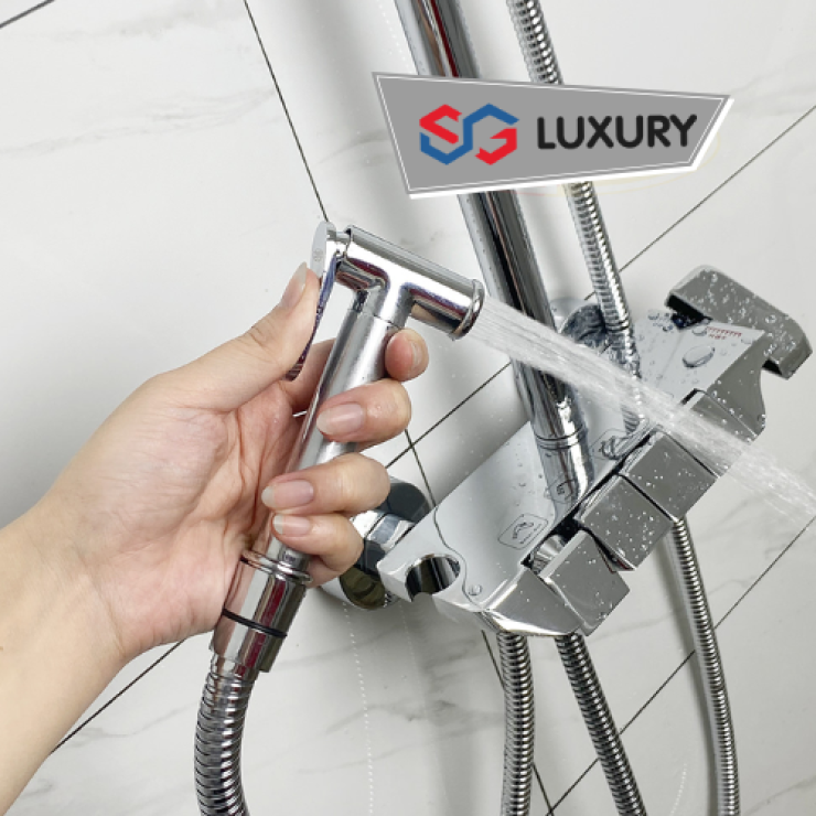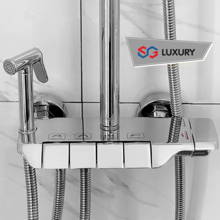 + Sen tắm có khoá điều chỉnh nước, sử dụng được 3 chế độ nước ra khác nhau: nước ra tay sen, đài sen và xả vòi.
