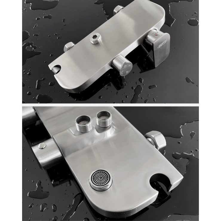 - Bộ sản phẩm gồm: 1 củ sen, 1 dây dẫn nước, 1 tay sen, 1 bát sen, 1 bộ ống đứng, ốc nối và các vít đi kèm.
