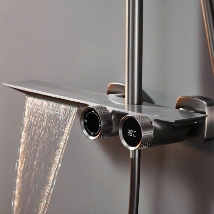 Sen Tắm Đồng Thau Phủ Nano Xám Màn Hình Led Tròn LUSENTER (ST23)