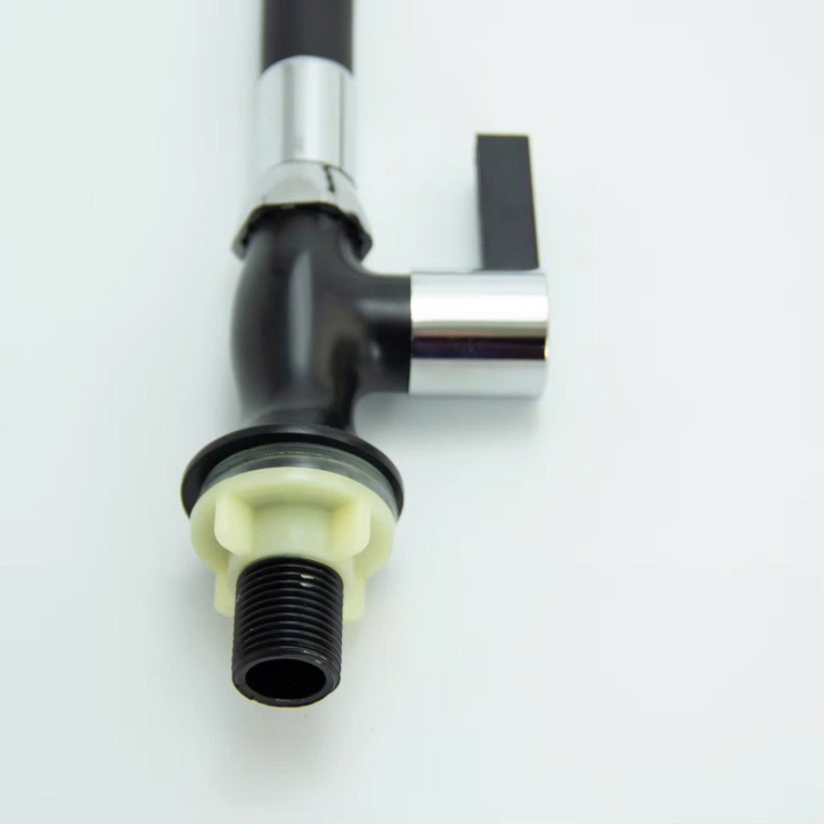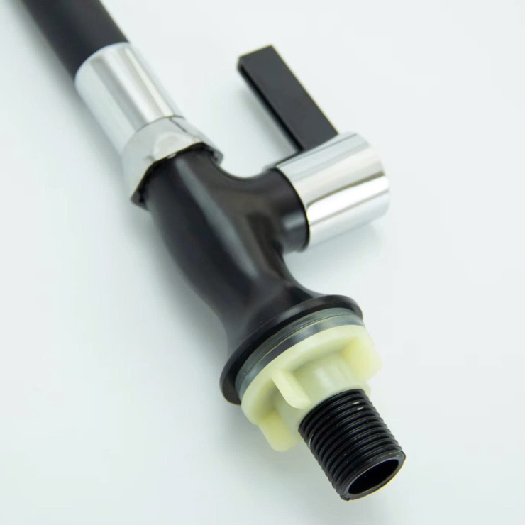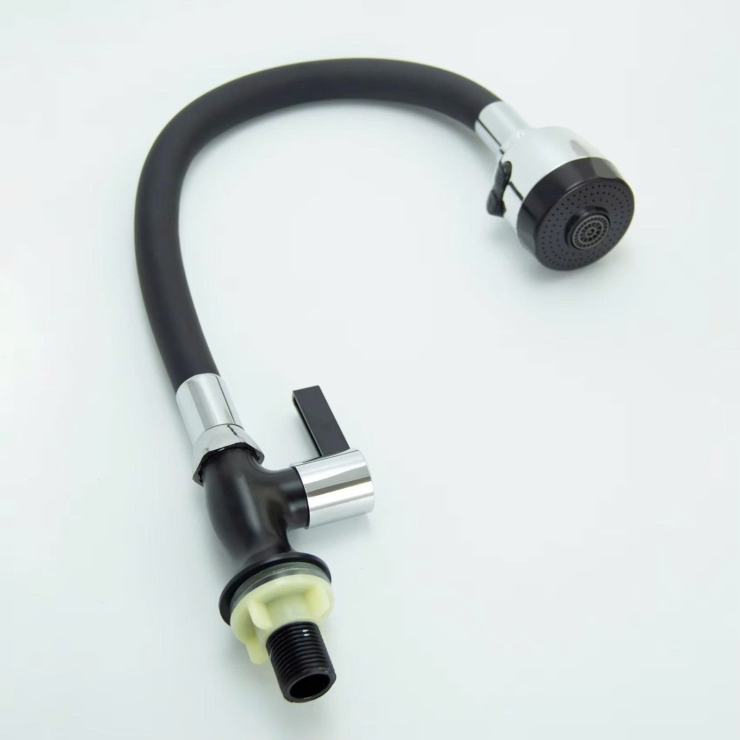 – Cấu tạo thân lò xo inox 304 bên ngoài bọc cao su cao cấp màu đen giúp vòi có độ bền cao. cần vòi có thể bẻ cong theo ý muốn.