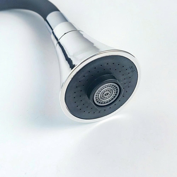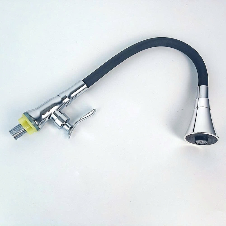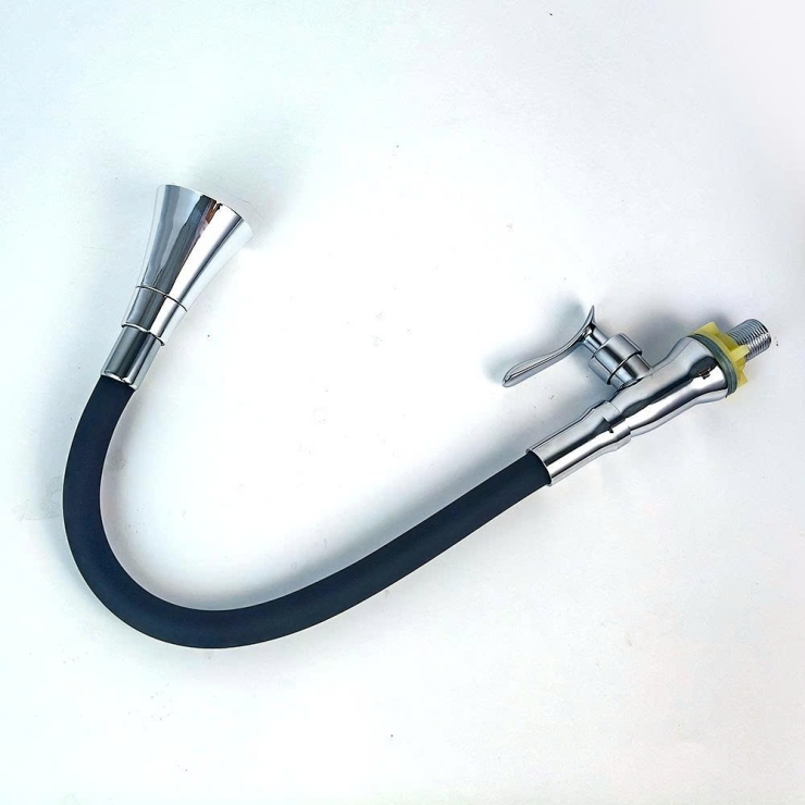 - Cấu tạo thân lò xo inox 304 bên ngoài bọc cao su cao cấp màu đen giúp vòi có độ bền cao. cần vòi có thể bẻ cong theo ý muốn.