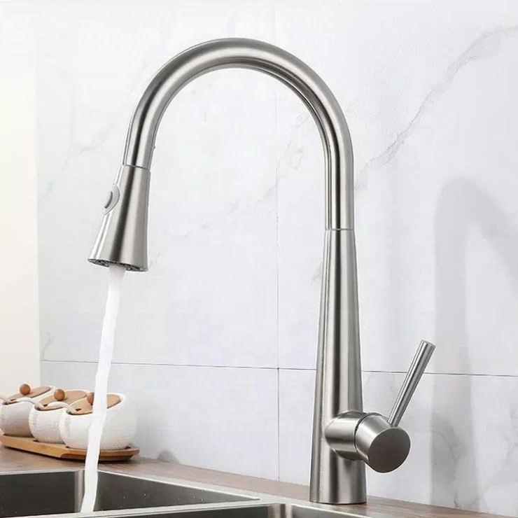 - Kiểu vòi có thể rút đầu vòi ra để vệ sinh xung quanh. Đầu vòi có thể rút dài ra khoảng 1-1,2 m để phun rửa xung quanh phạm vi bếp. Vòi nóng lạnh rất linh hoạt quay 306 độ. Trên đâu vòi có thể điều chỉnh các chế độ phun và ngắn nước tạm thời.