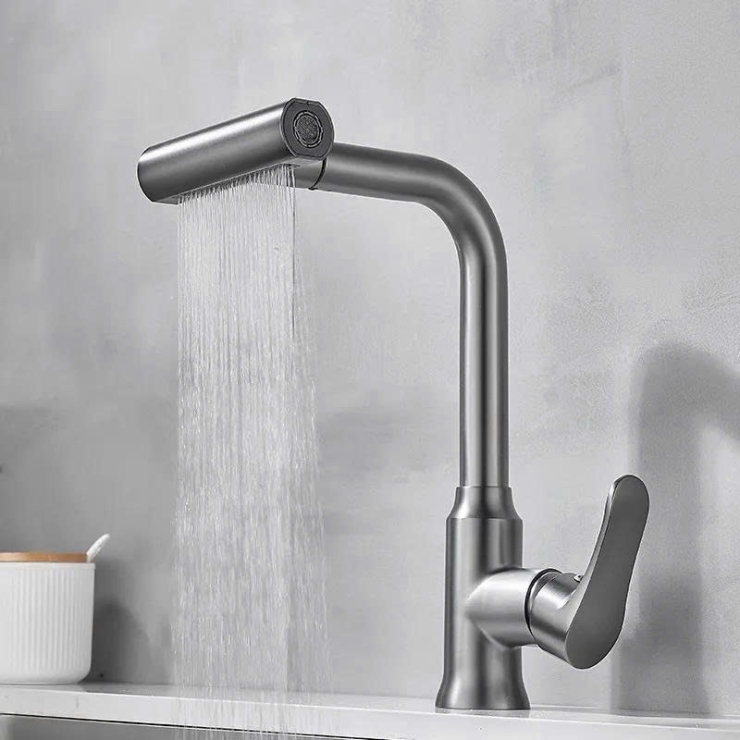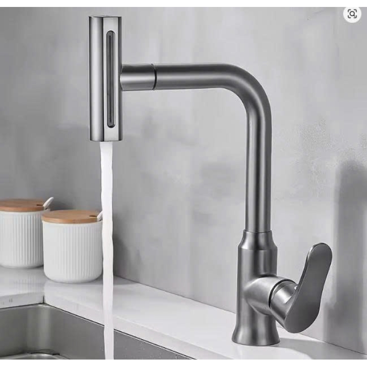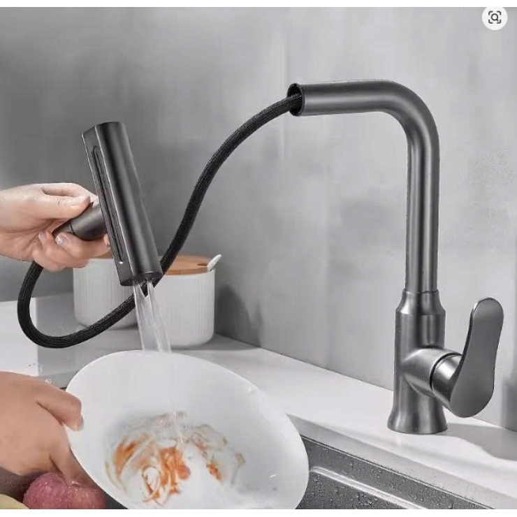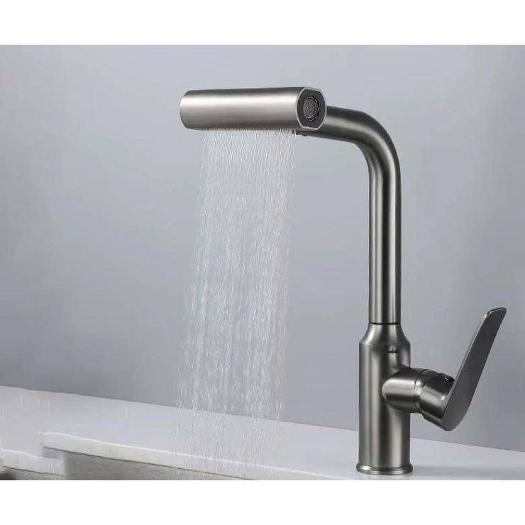 Vòi Chén NL 2 chế độ Xám Ngang Có Rút (VC51)