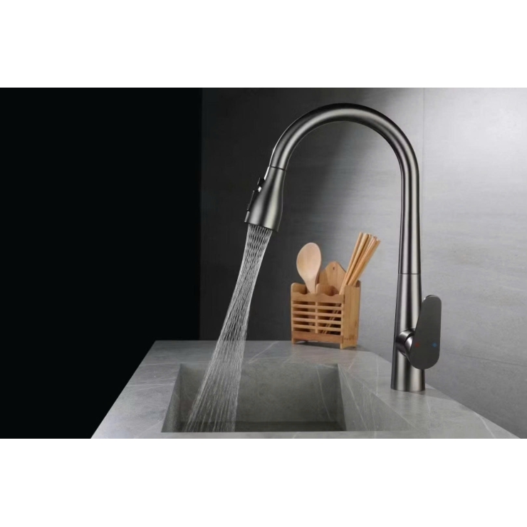 Vòi Chén Dây Rút Đồng Thau Sơn Tĩnh Điện Tròn Xám LUSENTER (VC37)