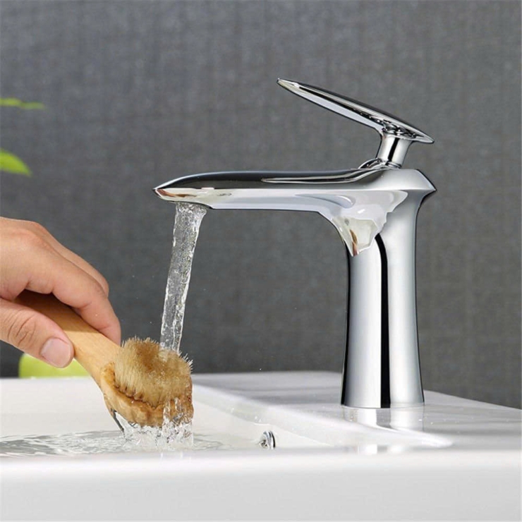 Vòi Lavabo Lá Xoài Đồng Thau Mạ Crom (VLB42)