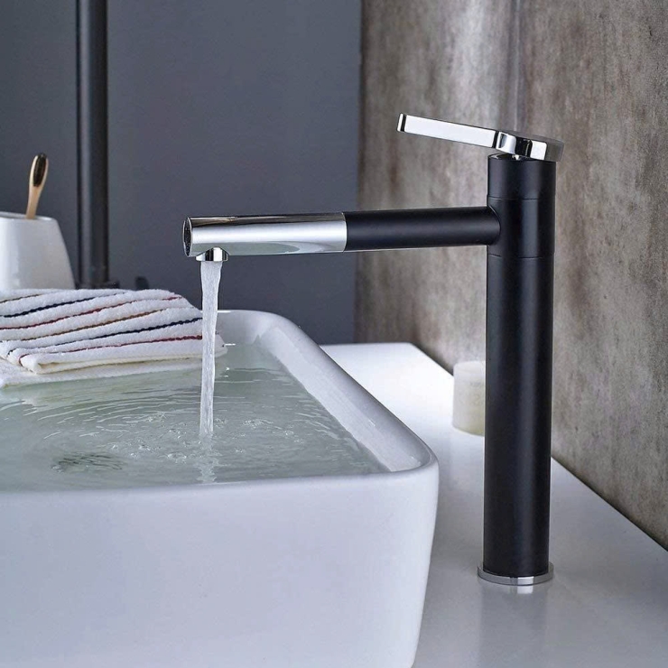 Vòi Lavabo Đồng ĐEN - VÀNG 30cm LUSENTER (VLB86)